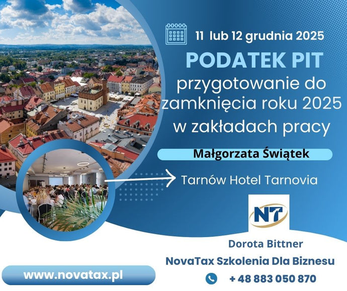 GR.II BILANS 27.XI.2025, 05.XII.2025, 12.XII.2025 stacjonarnie Tarnów PODATKOWE ZAMKNIĘCIE ROKU 2025 W PRAKTYCE - 3 DNIOWE WARSZTATY W PODATKACH VAT, CIT, PIT